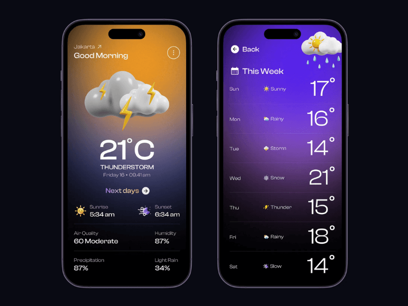 - Clean UI with weather icons
